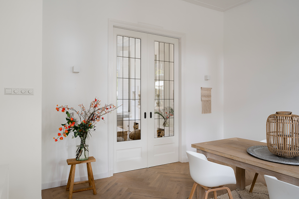 Karakteristieke deuren zoals vroeger, maar met eigentijdse profilering en panelen. Dat zijn deuren met S-profiel. Dit profiel bestaat uit een bol- en hol deel die samen een vloeiende S-lijn vormen. Mooi detail toevoegen? Kies voor ambachtelijk glas in lood. Past perfect bij deze stijl.