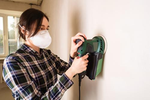 Stap 6: nu kun je de muur schuren met een handschuurblok en het schuurpapier. Gebruik eventueel een schuurmachine om de muur te schuren.