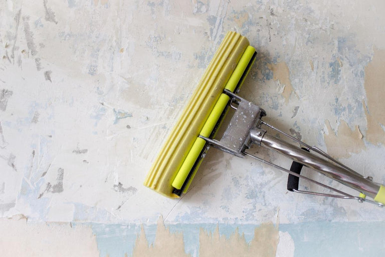 Dit heb je nodig: behangperforator, spons, emmer, afwasmiddel / vloeibare behangverwijderaar / Biotex, plastic plamuurmes, schuurpapier en eventueel een behangafstomer en behangafsteker.
