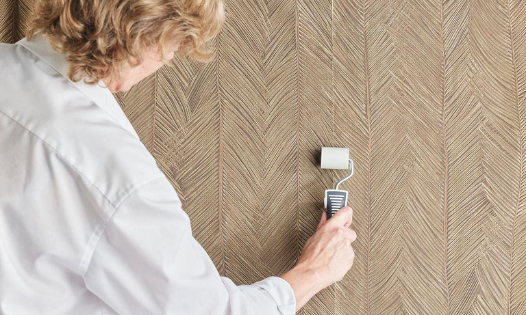 • Met een behangnadenroller krijg je nog strakkere naden. Voeg eventueel nog wat lijm toe.
