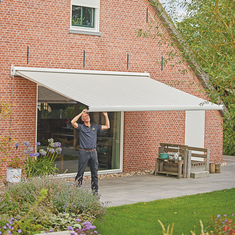 Zelf aan de slag met buitenzonwering? Ontdek handige tips voor het vervangen of onderhouden van een zonneschermdoek en het bouwen van je eigen overkapping voor extra schaduw.