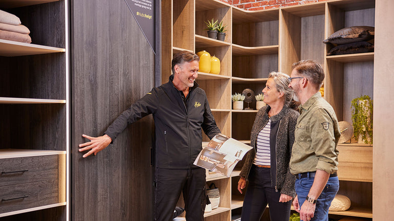 Voor onze vakmensen is geen hoek te moeilijk en geen schuine wand te lastig. Of je nu sorteert, organiseert, verbergt, stapelt of pronkt: zij vinden altijd een oplossing. Van slimme opbergideeën tot maatwerkkasten die naadloos passen in jouw ruimte. Elke kast op maat wordt een functioneel én stijlvol onderdeel van je interieur. Selecteer jouw keuzes en vraag direct een offerte aan.